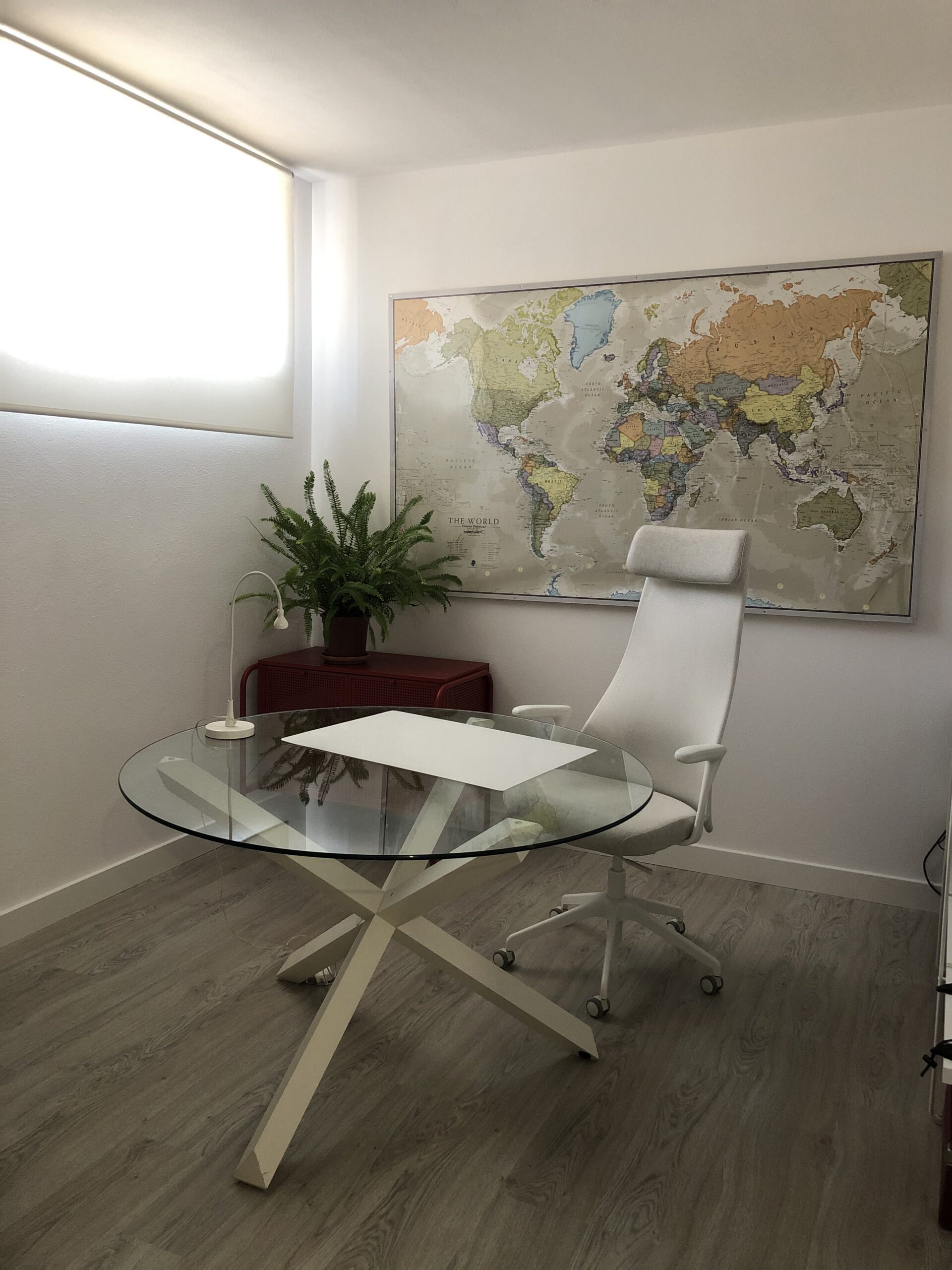 Este despacho parte de una habitación a reformar. Creamos un espacio cálido, de colores suaves que propicia la concentración.
