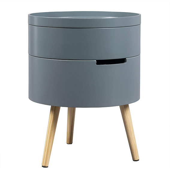 Mesita de noche con almacenamiento de madera MDF de color gris.