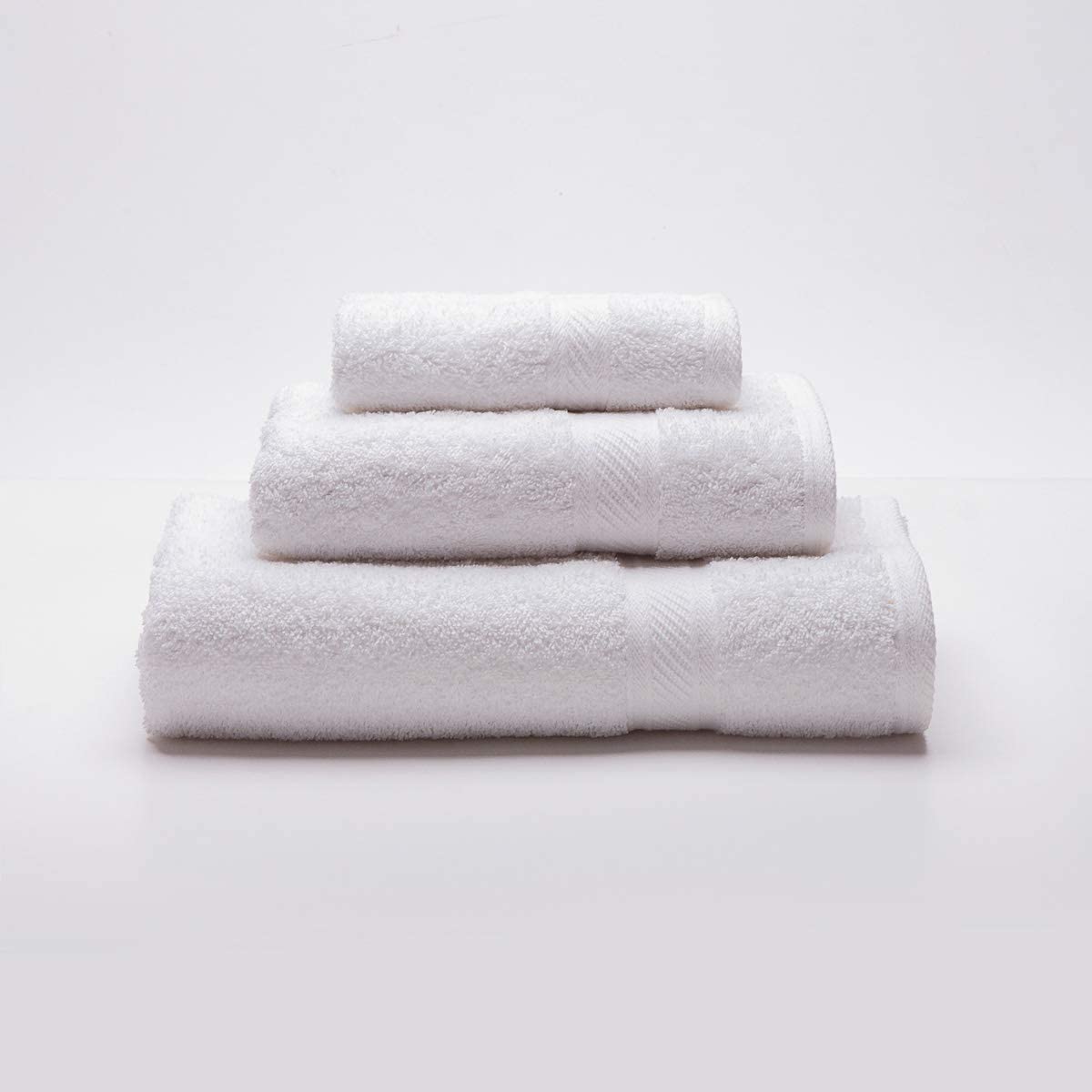Juego de toallas de 3 piezas blanco, 100% algodón rizo. Densidad de 450 gr/m2.